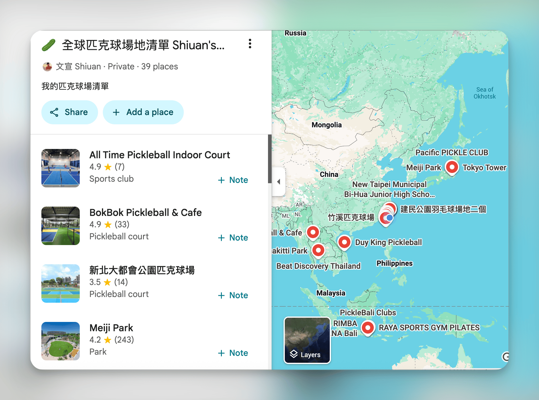 含台灣、峴港、峇里島、清邁共 39+ 匹克球場地